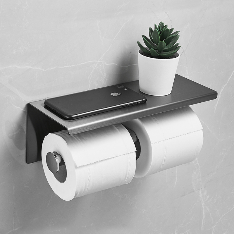 穴を開けないトイレのロール紙棚トイレの二重巻きの二重のトイレットペーパー棚の携帯電話スタンドのホルダーのティッシュ棚の箱