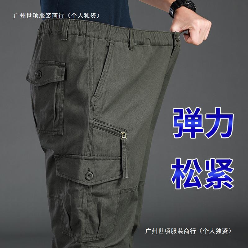 春の純綿工装ズボン男性のゆったりしたハイウエストの大きいサイズのカジュアルズボンの戦術ズボンの多ポケットの労働保護の耐摩耗性の長いズボン