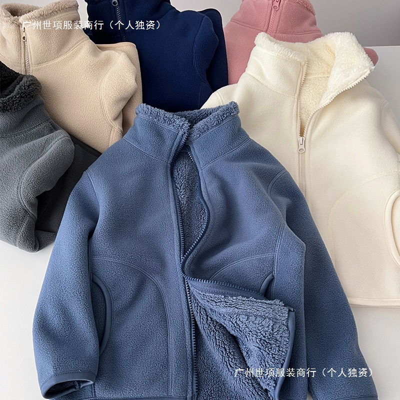 輸出品質男女児童立襟のフリースコート子供はジッパーを厚くしてベルベットをつかむ保温羊のベルベットの上着