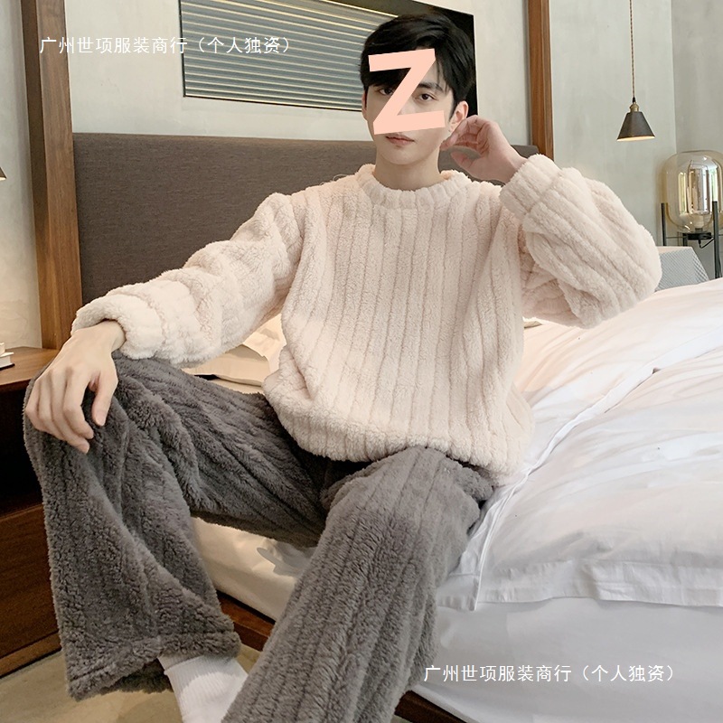 厚手の青少年にベルベットのフランネルの家の服のパジャマの男性の丸襟の秋の冬の男性のスーツのサンゴのベルベットの綿を厚くします