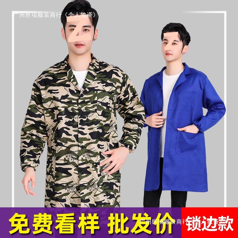作業服の男性の上着の長いタイプの労働保険服の迷彩服の工場服の養殖の汚れに強い耐摩耗性の青い上着の移動服のカバー