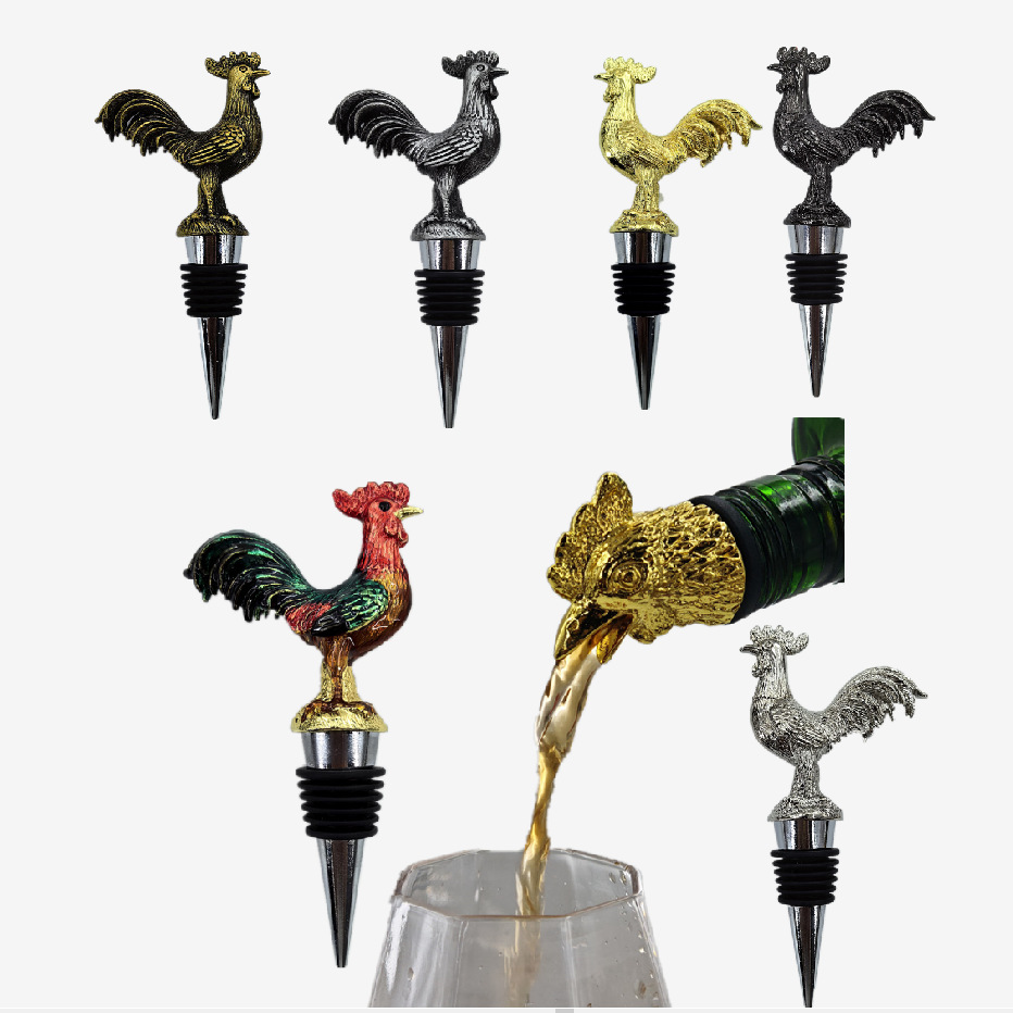ソースメーカークリエイティブメタルアニマルエナメル鶏赤ワインストッパー鶏ワインボトルストッパー鶏頭ワイン注ぎ口