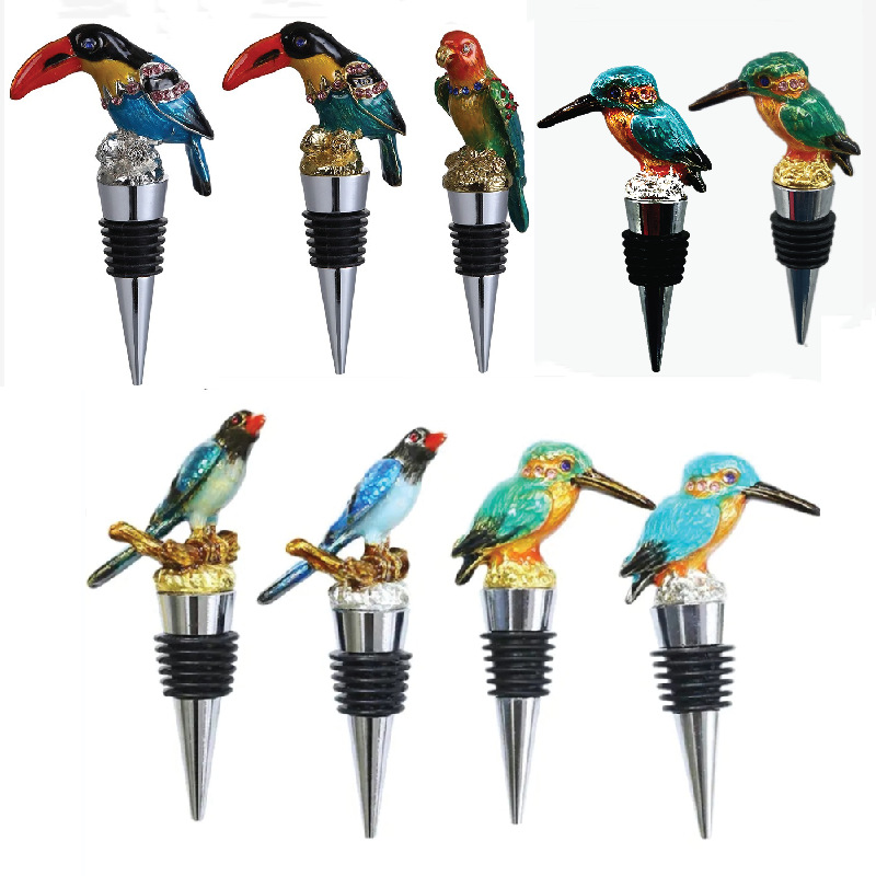 クリエイティブな亜鉛合金エナメル彩の喜鵡酒瓶栓、翡翠鳥、オウム、大口鳥の酒瓶栓、鮮度保持栓、バー、家庭用