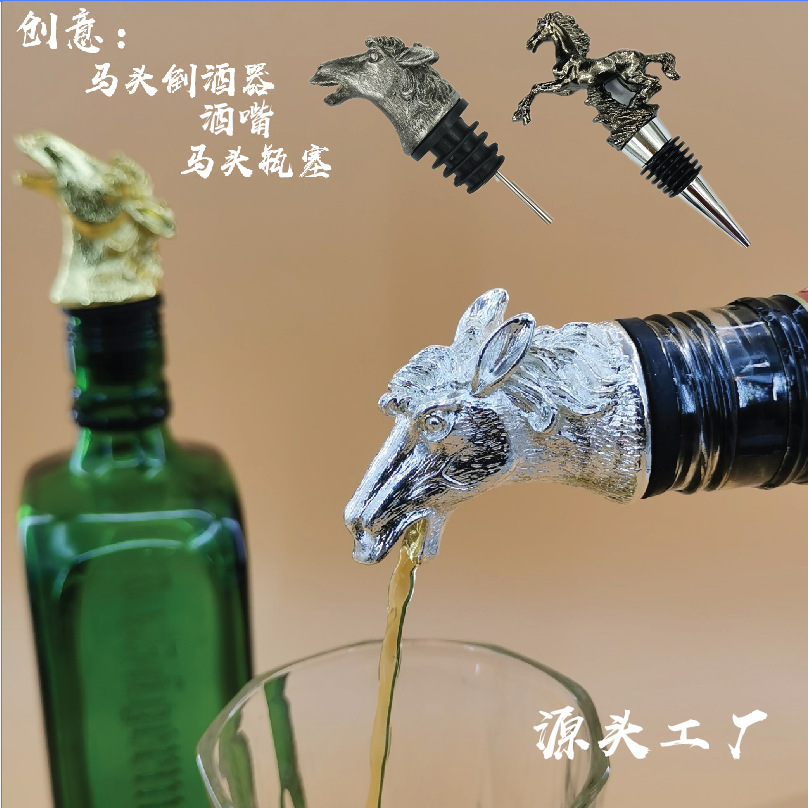 クリエイティブな亜鉛合金製動物馬頭型ワインディスペンサー、馬型ボトルストッパー、鮮度保持ストッパー、家庭用ワインストッパー