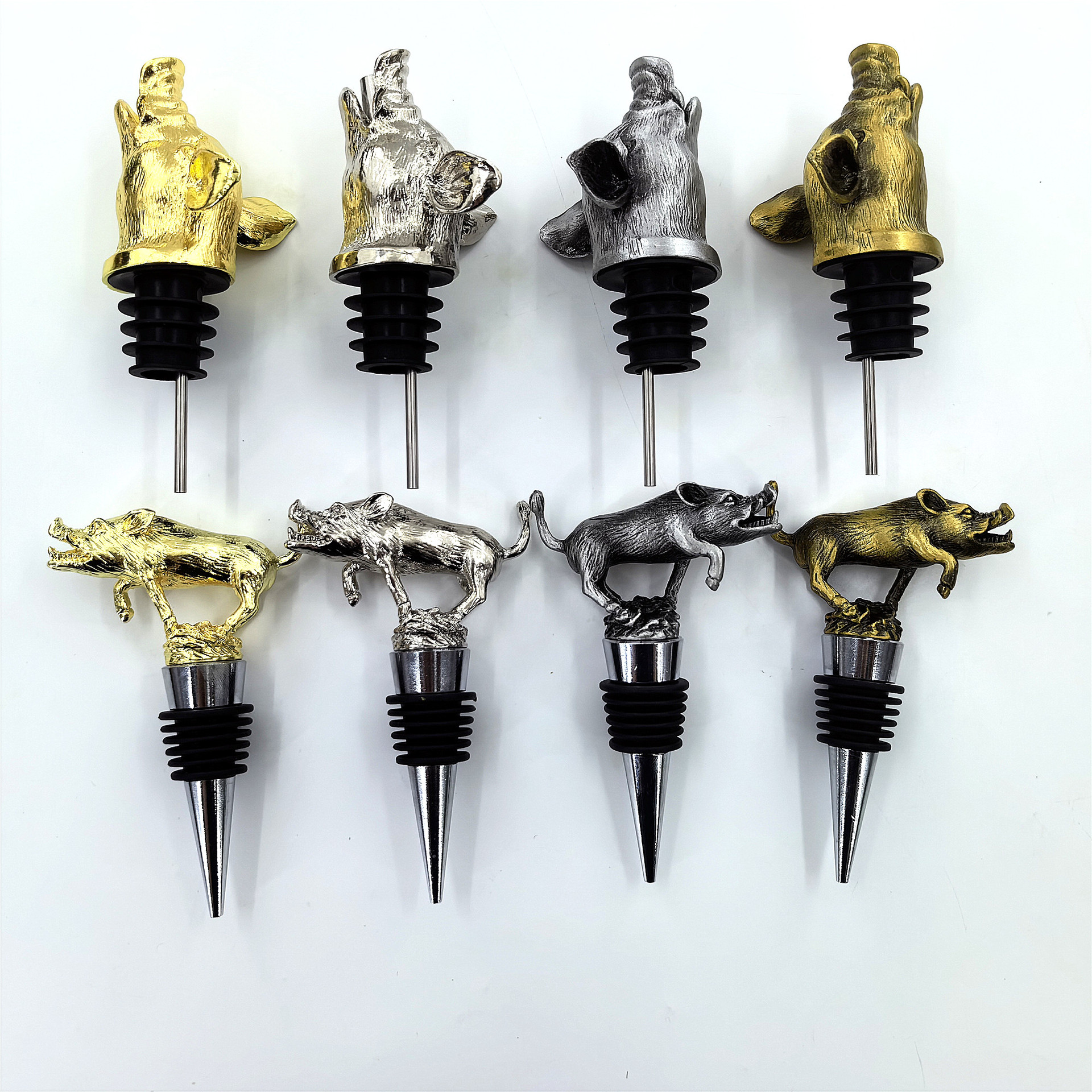 ソースメーカークリエイティブ亜鉛合金イノシシヘッドワインポアラー、ワインディスペンサー、イノシシワインストッパー、ボトルストッパー、鮮度保持ストッパー