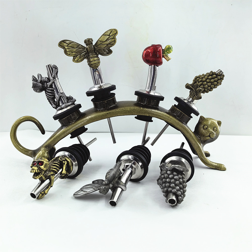 メーカークリエイティブ亜鉛合金ブドウリンゴ小さなスカル蜂ワイン注ぎ口バーファンシーホームワインディスペンサー