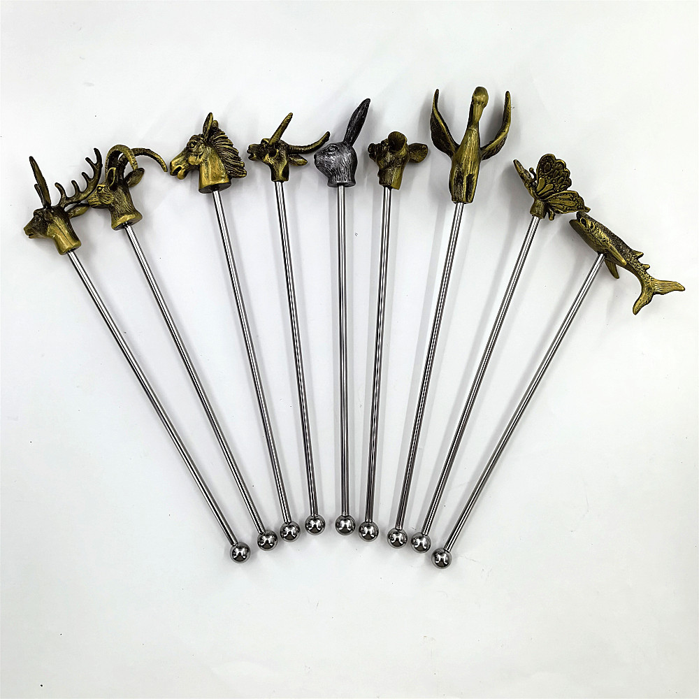 亜鉛合金動物頭ステンレス撹拌棒ミルクティー砂氷撹拌棒バーカクテル装飾芸術酒