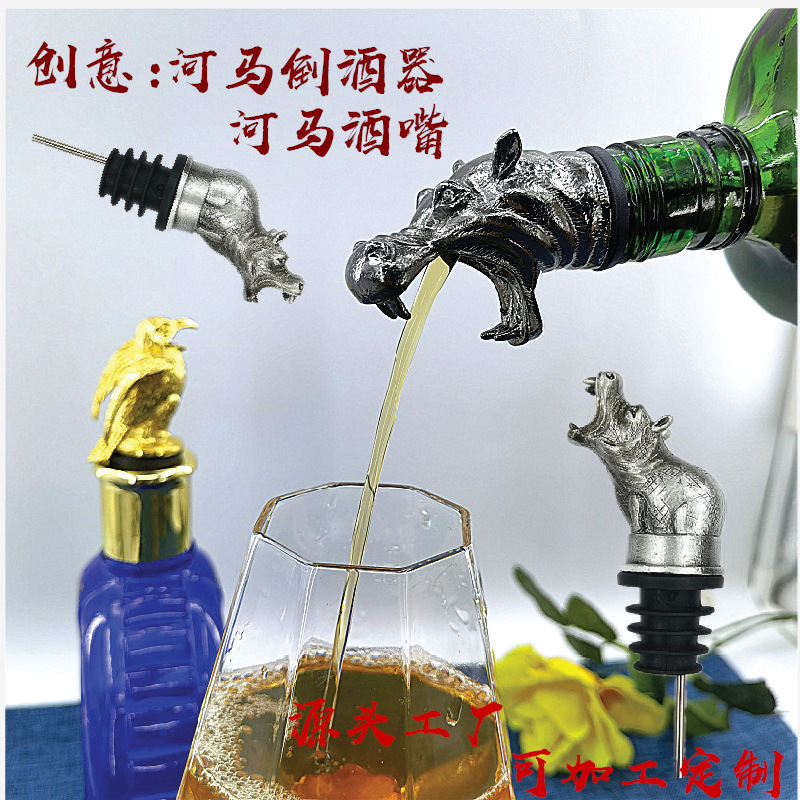 メーカー創意亜鉛合金動物頭カバ頭倒酒器カバ頭酒口引酒器家庭用ワインボトル