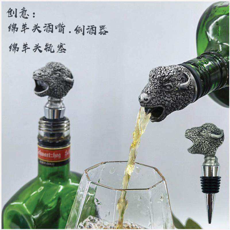メーカーの創意亜鉛合金動物のヒツジの頭は酒を注ぎます。