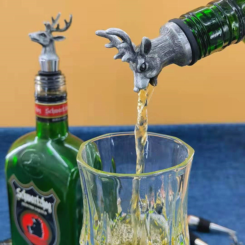 創意亜鉛合金ミニ野格鹿頭倒酒器鹿頭瓶栓保存酒類広告小プレゼント