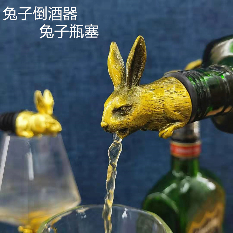 創意亜鉛合金十二生肖兎子頭倒酒器分酒器兎瓶栓保存栓淘宝小プレゼント