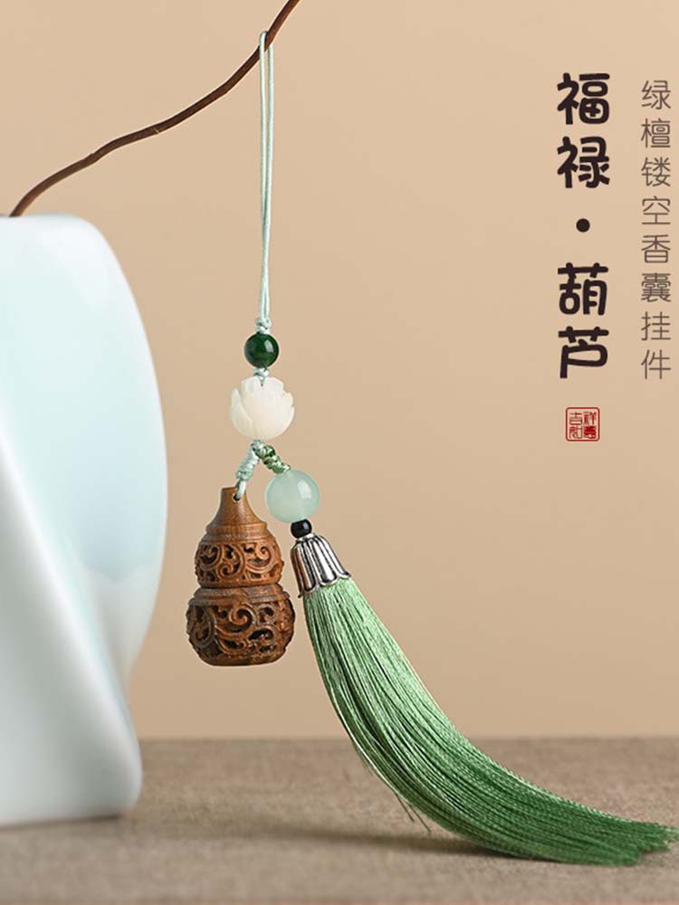 緑檀木の透かし彫りのヒョウタンの香嚢のボールのフリンジのストラップの携帯チェーンのカバンは装飾の拡香器を飾ることができて、創意がかわいいです。