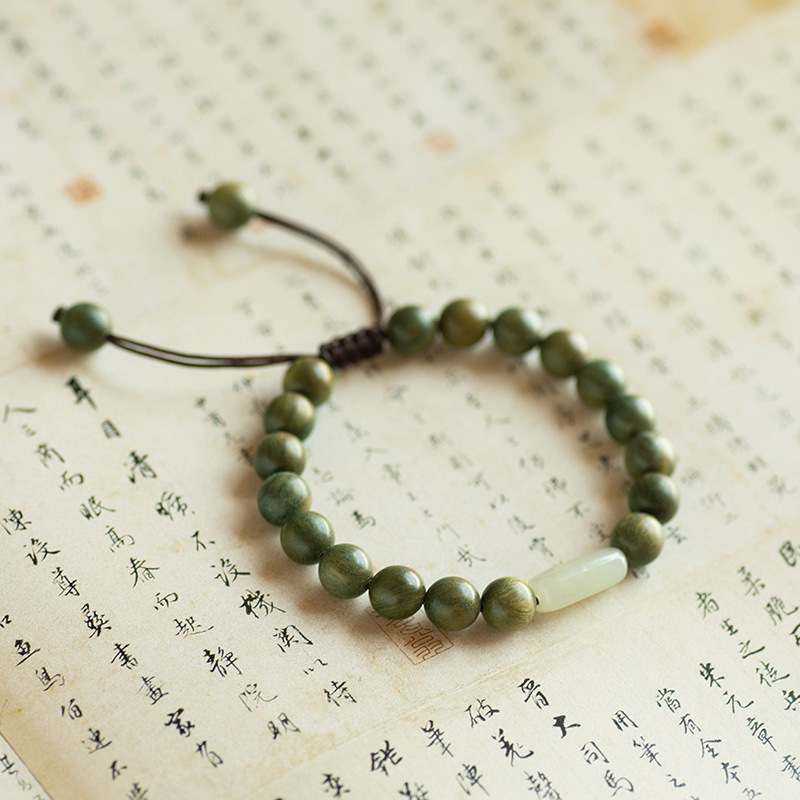 緑檀木仏珠手串老料和田玉檀香木ブレスレット男女民族アクセサリー手串中国風