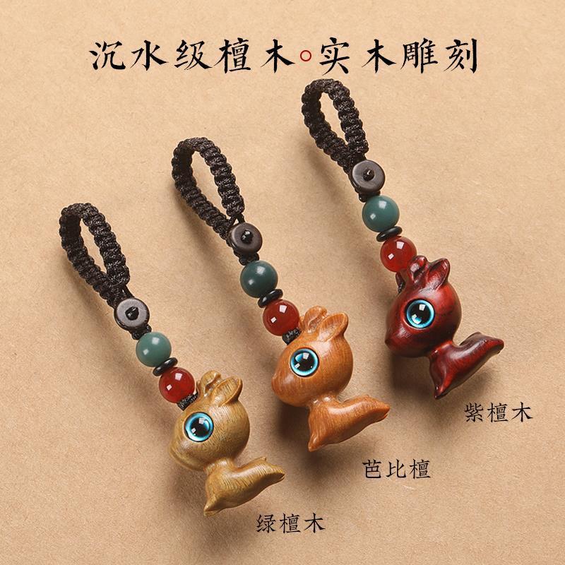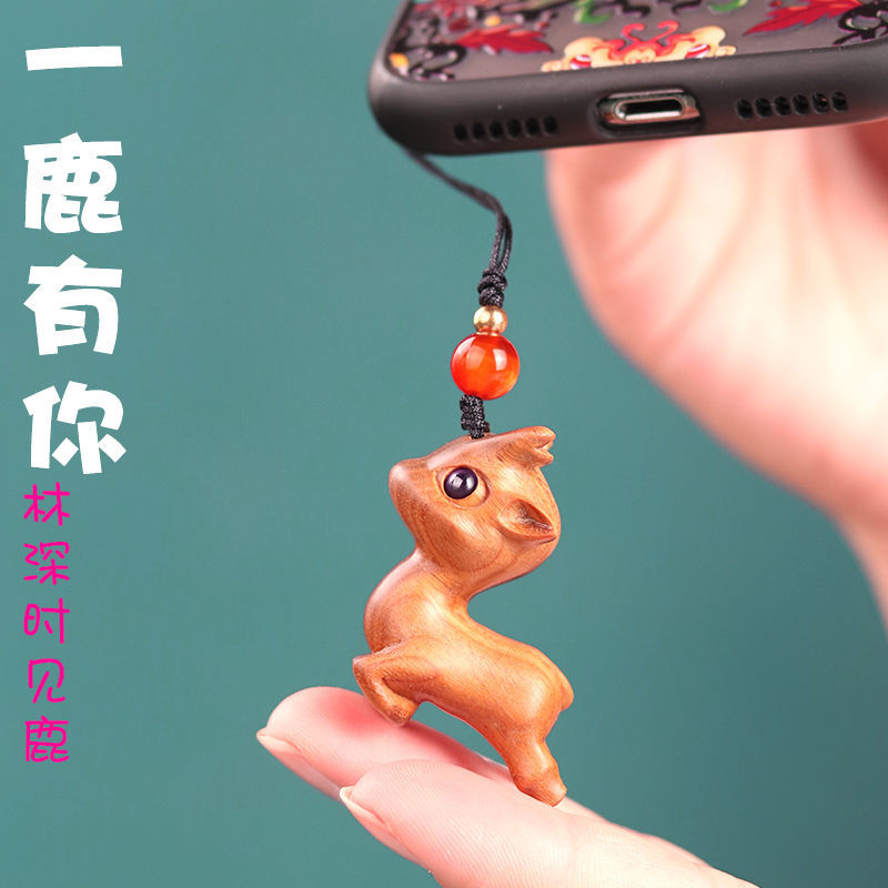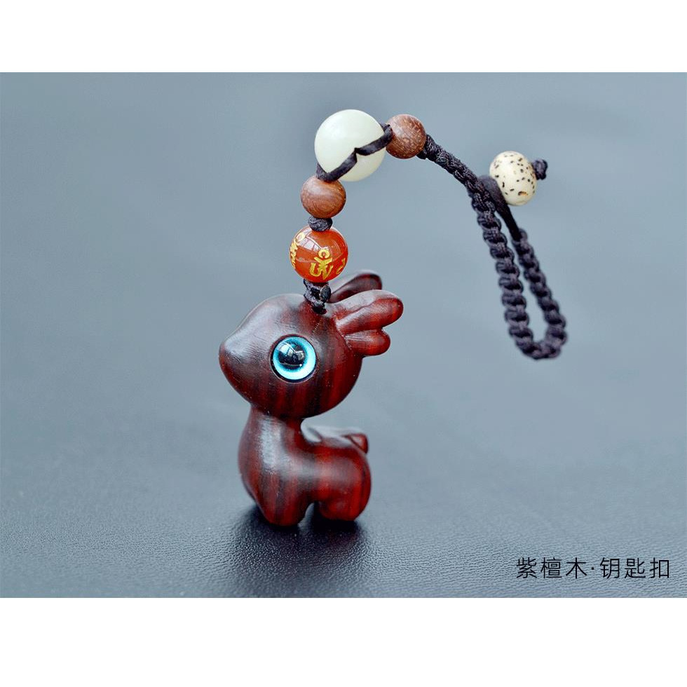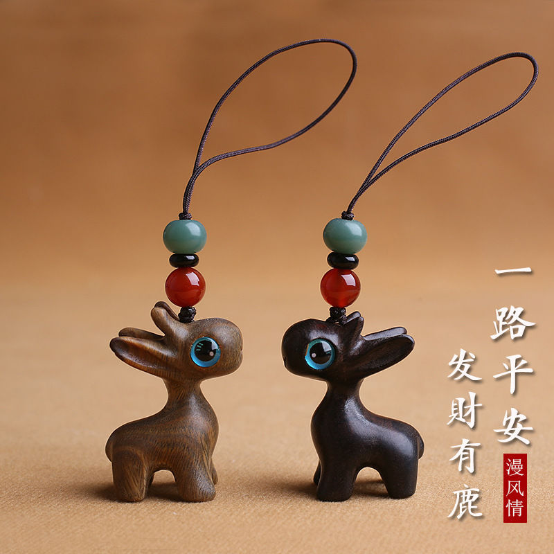 道中檀木小鹿自動車キーホルダー携帯電話ペンダント男女カップルバッグ飾りチェーン