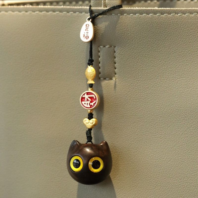 黒檀の猫の車のキーホルダーは男女の創意的な携帯電話のペンダントのカバンのペンダントのチェーンを掛けます。