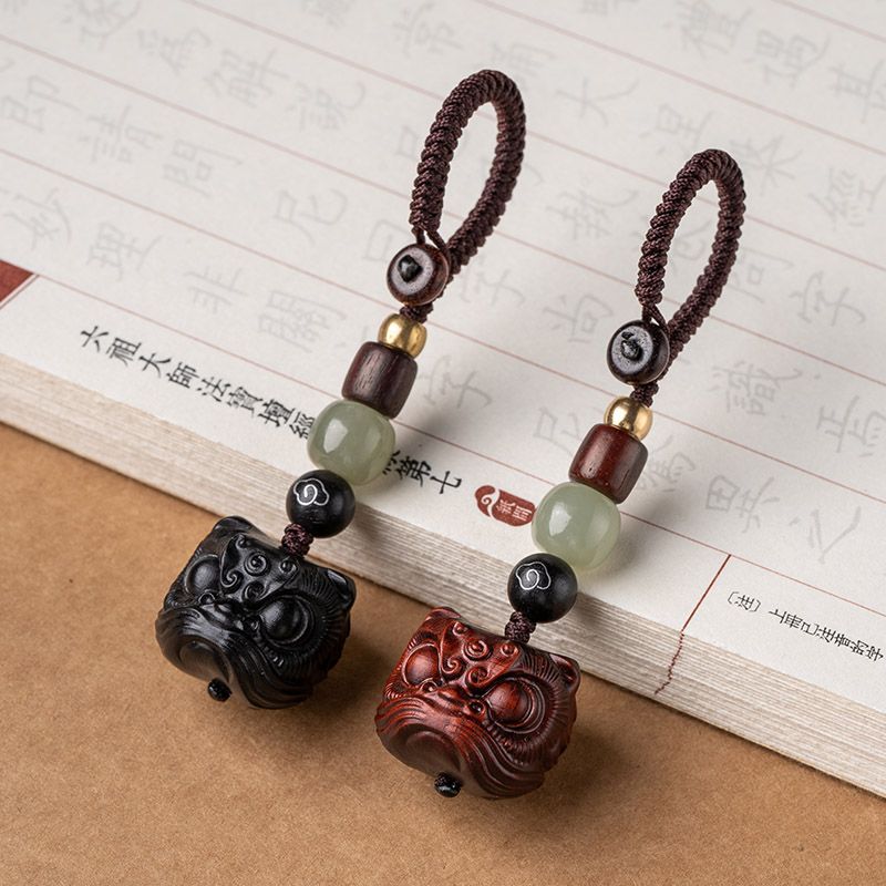 紫黒檀木国潮覚醒ライオン自動車キーホルダーペンダント男女吉祥如意キーホルダーペンダント