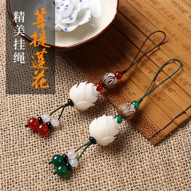 創意的な手編みの白は菩提蓮の花の携帯電話のペンダントのカップルのuディスクのキーチェーンの紐の鍵をまねます。