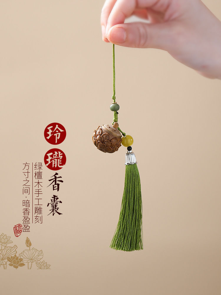 香嚢の男性は古風の緑の檀木の香嚢のボールの携帯電話のチェーンを身につけて縄の香薫のペンダントをつけて携帯電話のチェーンを開けることができます。