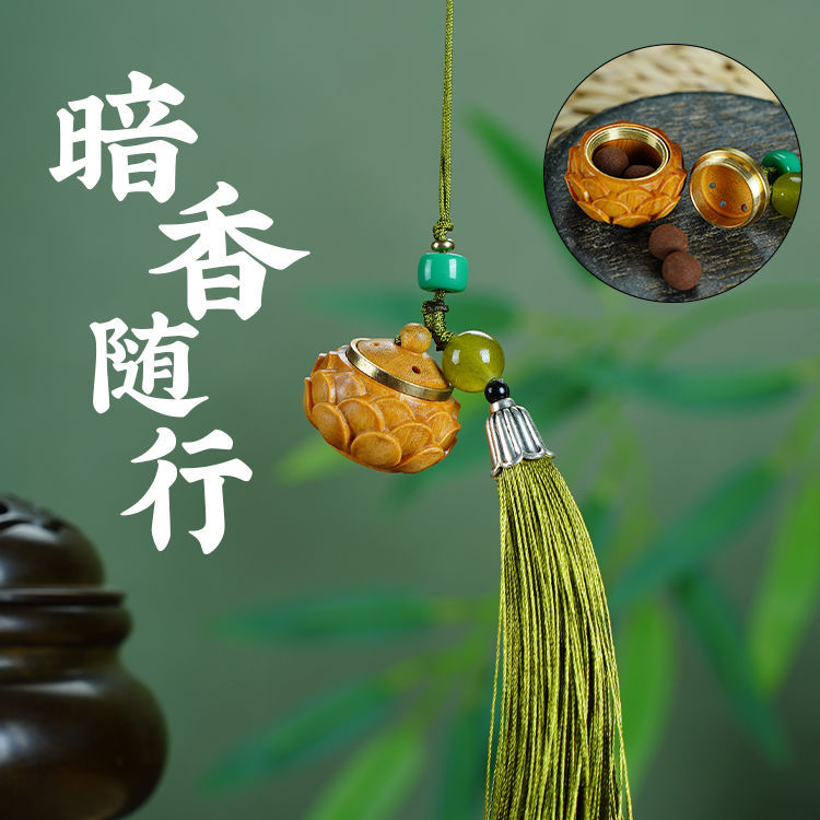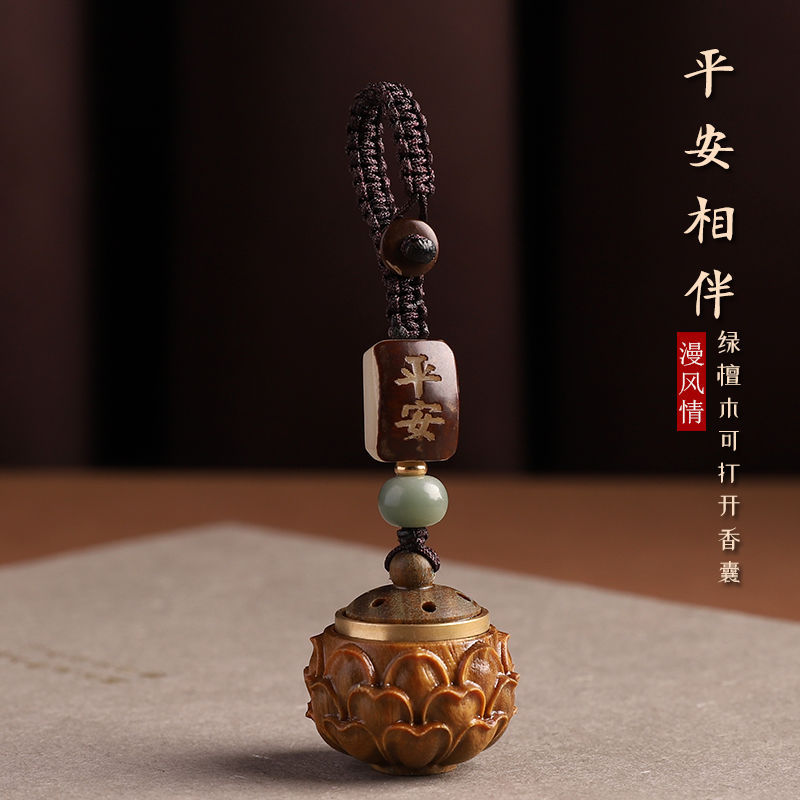 緑檀木の古風の透かし彫りの香嚢の玉の香丸の自動車の鍵はペンダントをつけて香薫の携帯電話のチェーンのペンダントを身につけます。