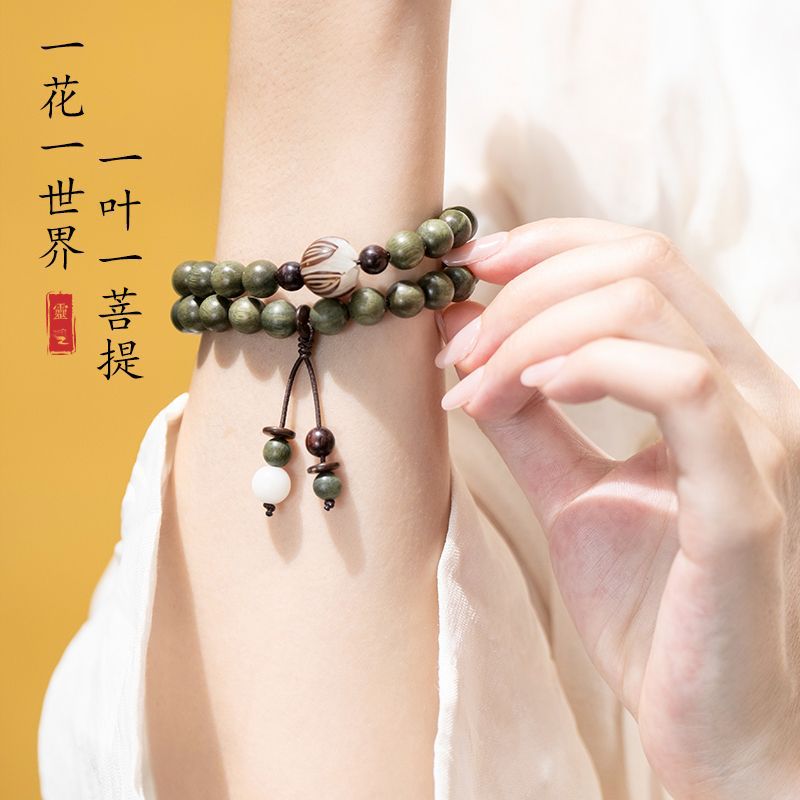 譚大工緑檀木手串蓮菩提子檀香仏珠盤は森系ブレスレット七夕プレゼント女を遊びます。