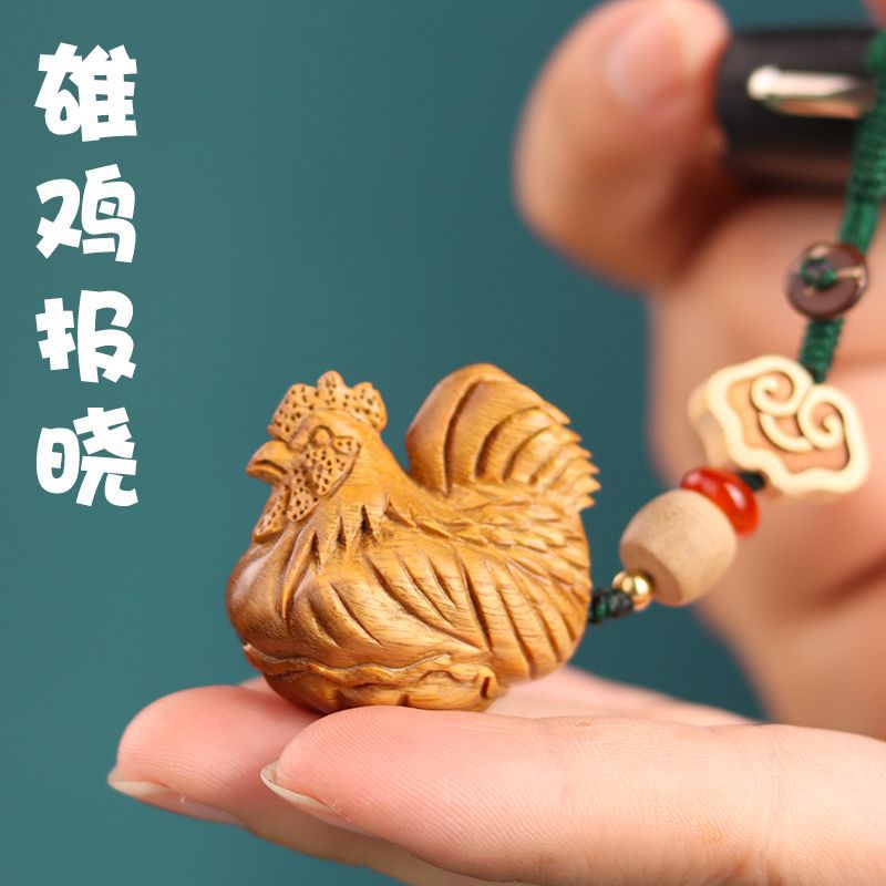 緑檀木の国風の復古の生肖の雄鶏の雄鶏は車のキーチェーンの包みを知っています。