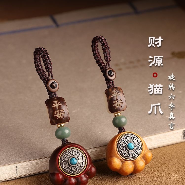 金儲け六字真言紫檀木猫爪自動車のキーホルダー