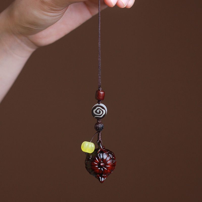 花梨の透かし彫りの香りの袋のヒョウタンの花瓶のペンダントの木の彫刻の拡香器の装飾品のキーホルダーの携帯電話のペンダント