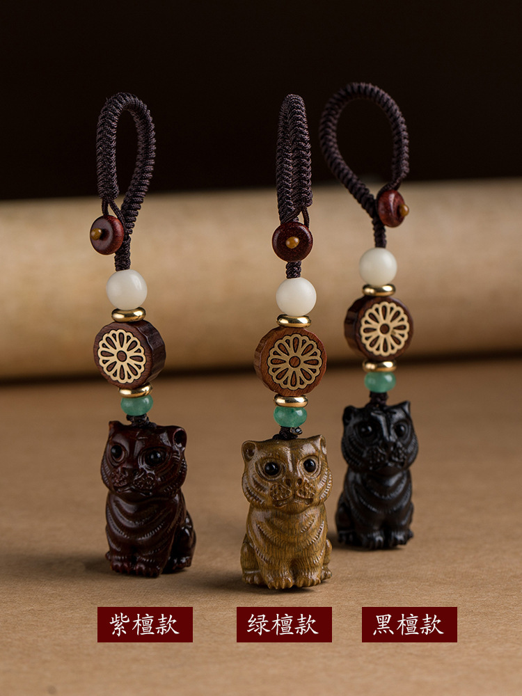 虎年本命年黒檀木生肖虎自動車キーホルダーストラップストラップ男女子プレゼント