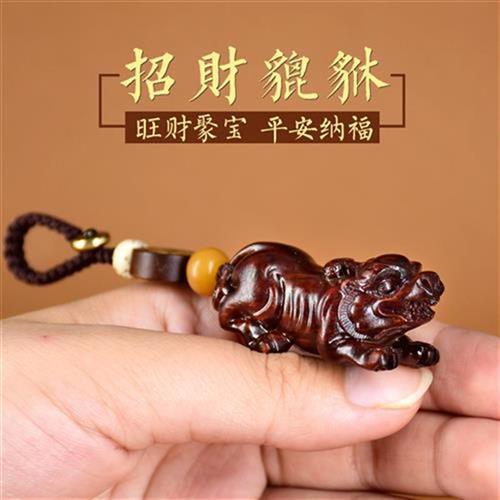 貔貅キーホルダー木製彫刻男女兼用クリエイティブバッグ飾りV車チェーンペンダントとバックルアクセサリー