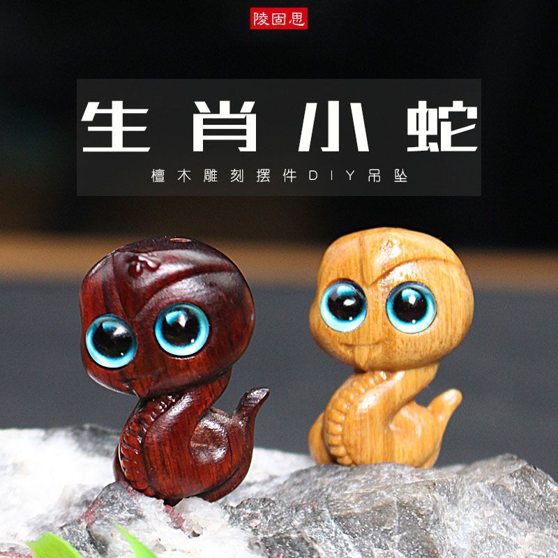 メーカー直販創意生肖ペンダント小蛇ストラップ檀木彫刻工芸品diy携帯電話バッグキーホルダー