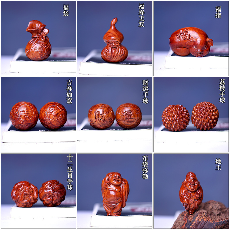 ミャンマーの花梨の木の彫刻の取っ手の部品のラオスの黄花梨の彫刻の工芸品の文は赤い木の装飾品の木の装飾品の木を遊びます。