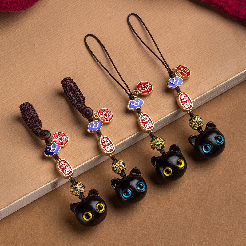 黒檀木の子猫が車のキーホルダーを飾ってかわいい猫の男女ネットの赤いペンダントの創意的な贈り物を飾ります。