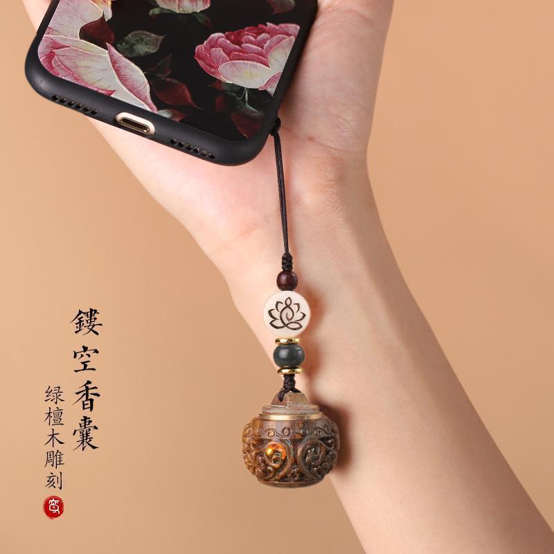 緑檀木質聚宝盆銅銭香嚢透かし彫り携帯電話バッグキーホルダーストラップ震え音生放送