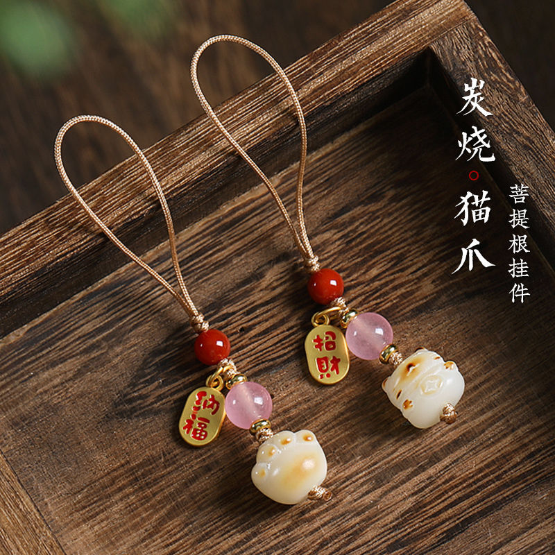 菩提炭焼猫の爪の携帯チェーンのペンダントが可愛い女性の携帯ケースのキーホルダーのカップルのペンダントです。
