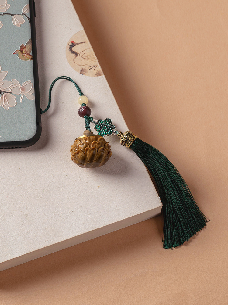 緑檀透かし彫りの香嚢ペンダント拡香器檀香木蓮香嚢流蘇レトロキーホルダー