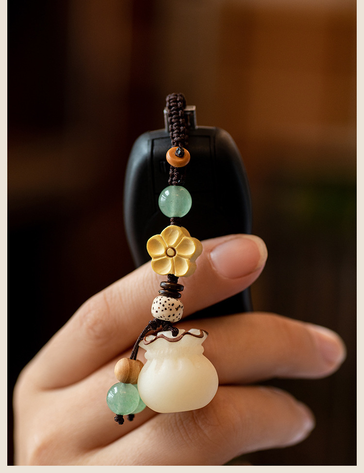 緑檀ヒョウタンの香嚢の空の袋の自動車のキーホルダーは男女の集まりの携帯電話のペンダントを掛けます。