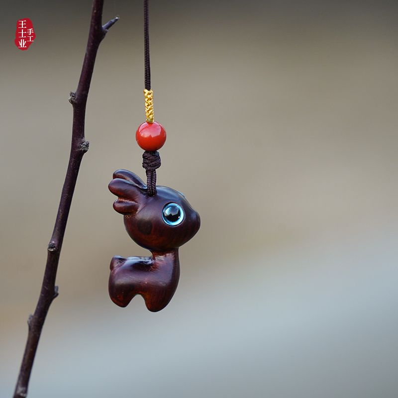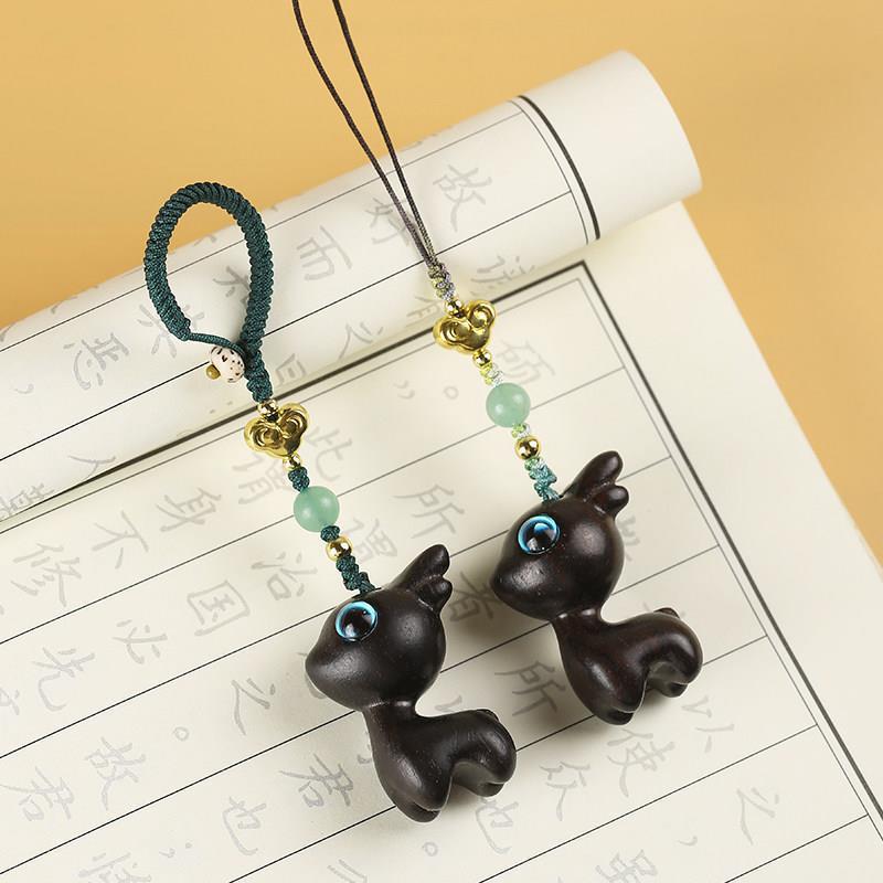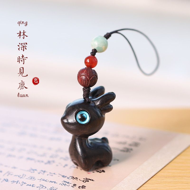 一緒にかわいい鹿の携帯のチェーンは中国風の紫檀木の黒い檀木のカバンのペンダントのアイデアの男女を掛けます。