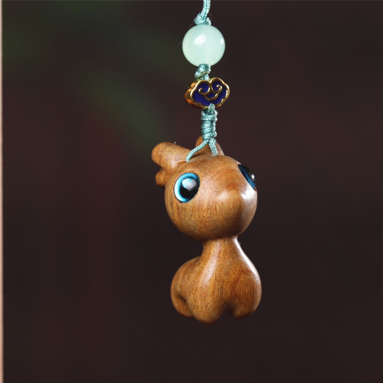 檀木小鹿自動車キーホルダーペンダントかわいい系ペンダント携帯電話ペンダント男女カップルプレゼント