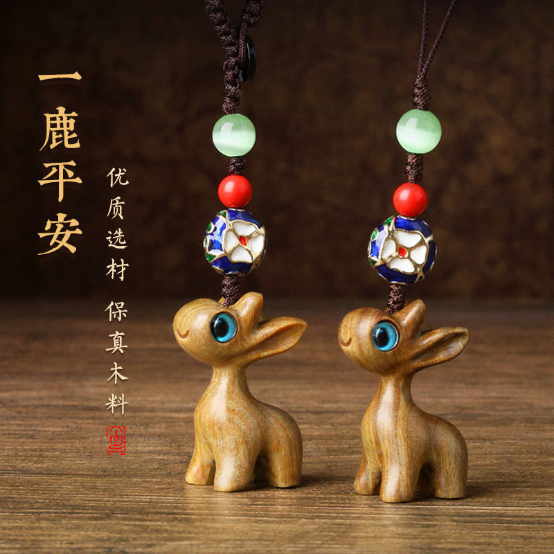道中檀木小鹿自動車キーホルダー携帯電話ペンダント男女カップルバッグ飾りチェーン
