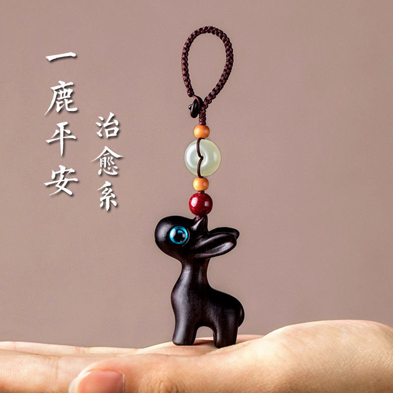 珍如意一鹿黒檀木自動車キーホルダーストラップ携帯チェーンソフト萌え小鹿ペンダントプレゼント