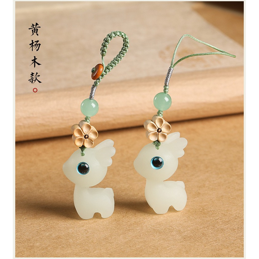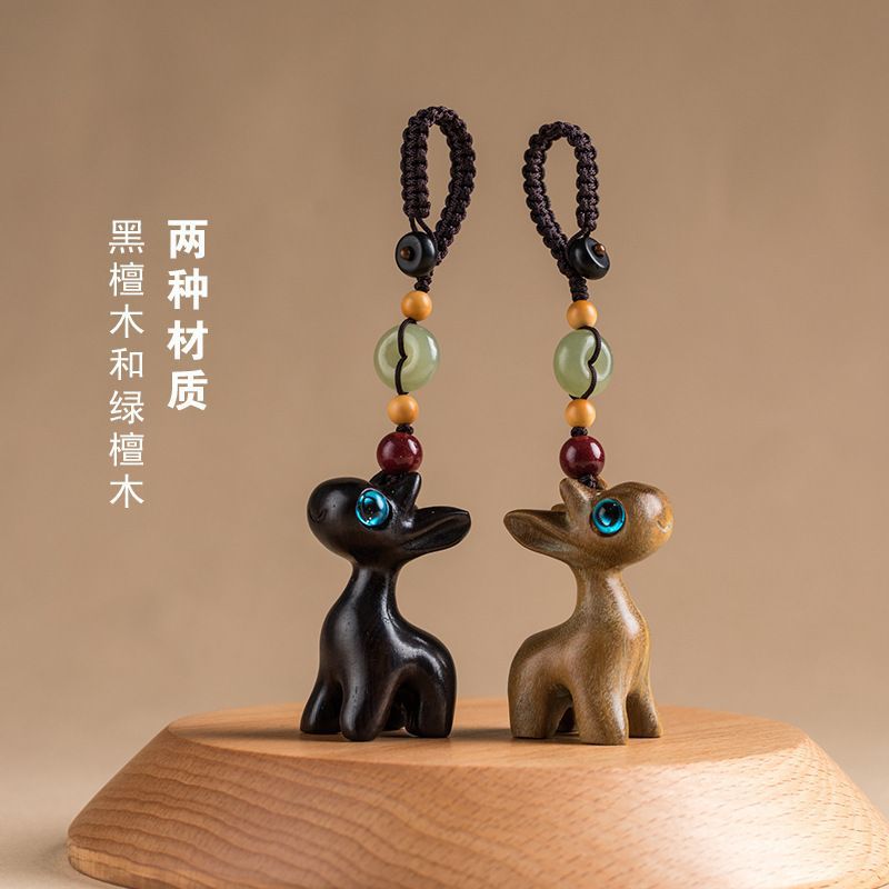 檀木小鹿自動車キーホルダーペンダントかわいい系ペンダント携帯電話ペンダント男女カップルプレゼント