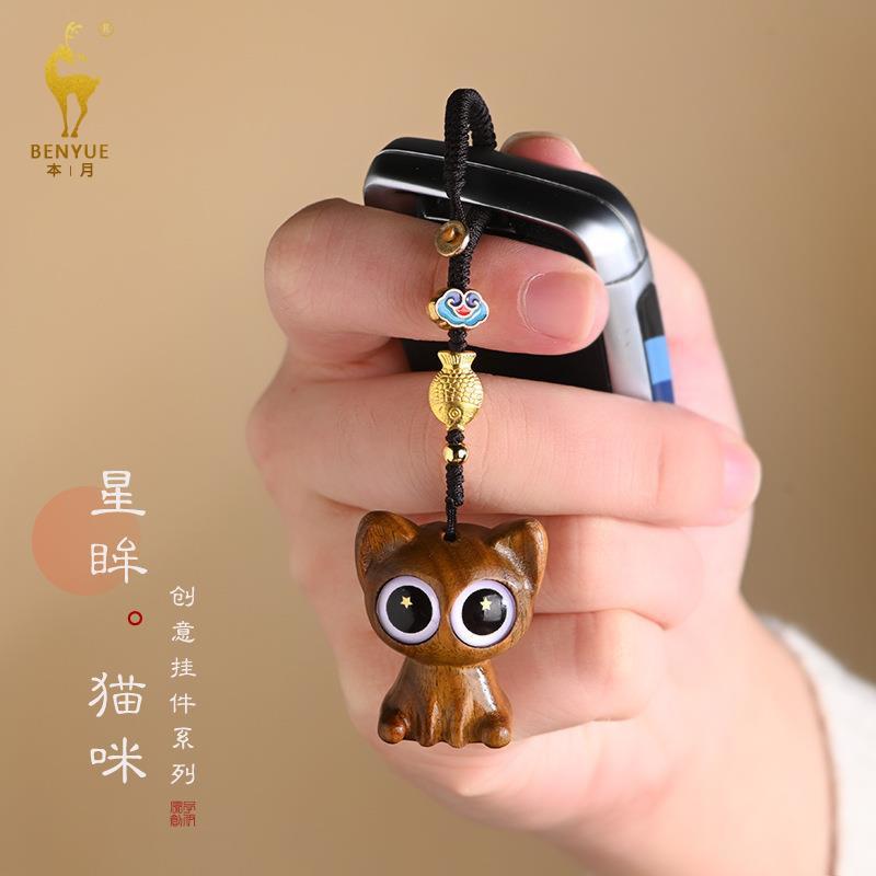 星猫緑檀木彫りキーホルダーストラップストラップストラップストラップストラップ誕生日プレゼント男の子女の子バックパックストラップアイディア