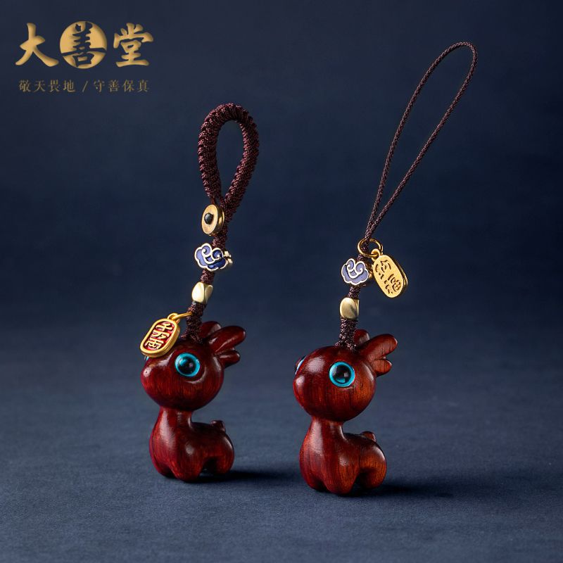 大善堂【一路】紫檀木小鹿自動車キーホルダーストラップ男女携帯チェーン創意