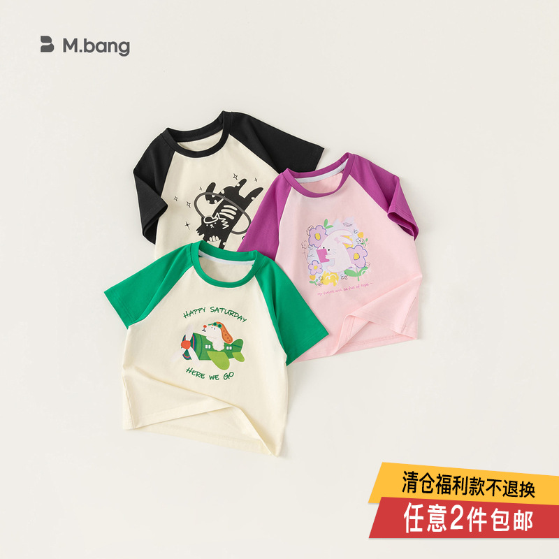 Youbao 子供服子供のラグランスリーブ Tシャツカラーブロック夏女の子半袖夏服漫画プリントトップ XY24279