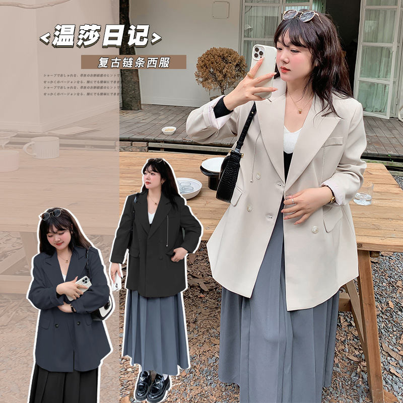 7619 輝晨微太体型向け韓国風通勤OL風スーツセット 秋ゆったりおしゃれ体型カバースーツ-BFD