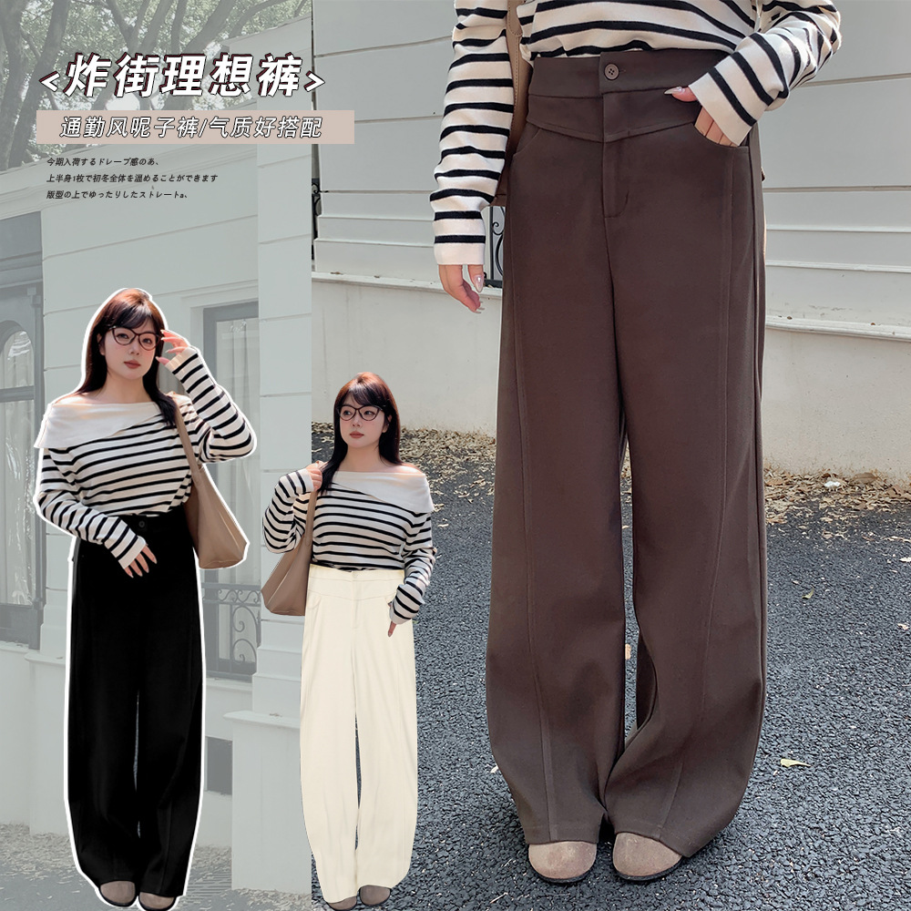 W 1238軒辰微太った大コード韓国版通勤風気質ラシャズボン秋の洋気ストレートズボン高腰女性ズボン