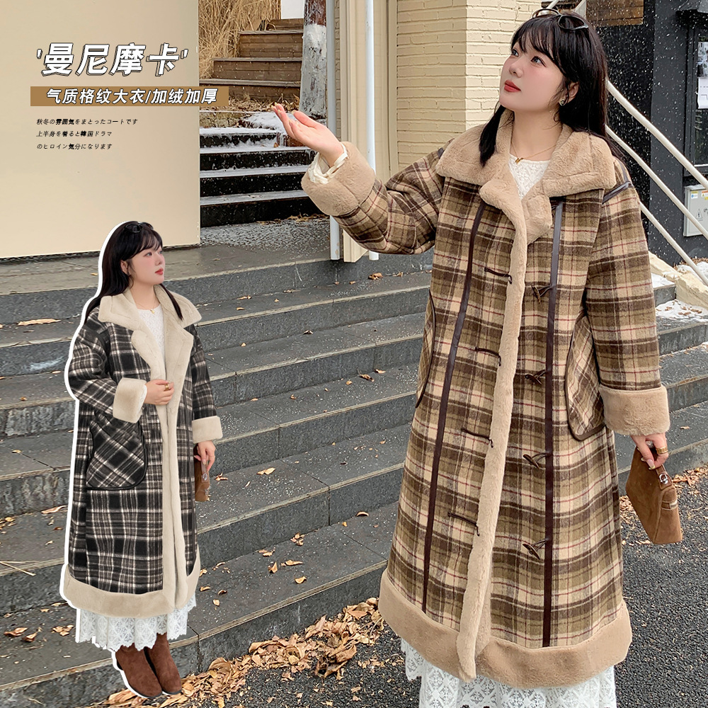 2438軒辰の微太った大きいサイズの婦人服の冬の新型の肉の女の子の格子縞の復古は色にぶつかります。