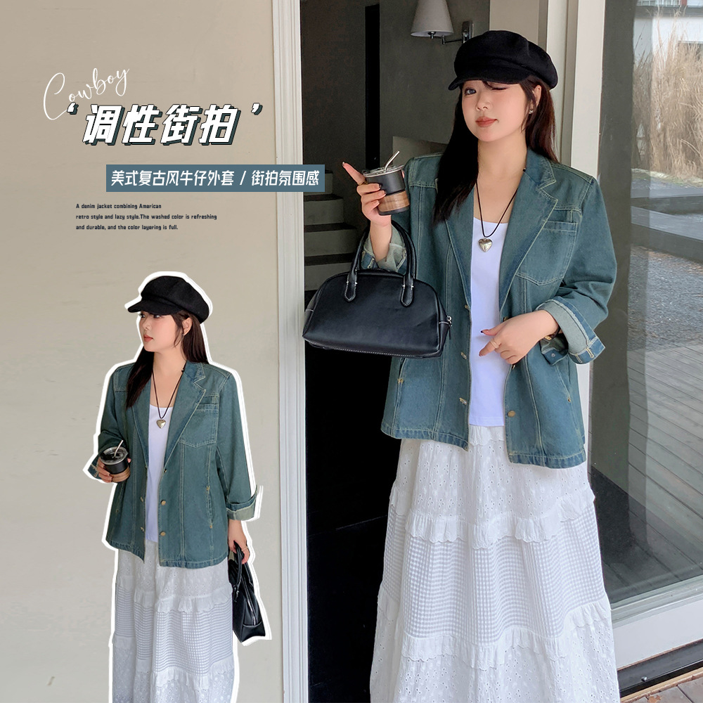 A0089 輝辰 大きいサイズ レディース 秋新作 エレガント アメリカンレトロ風 ゆったり カジュアル ウォッシュドデニムジャケット