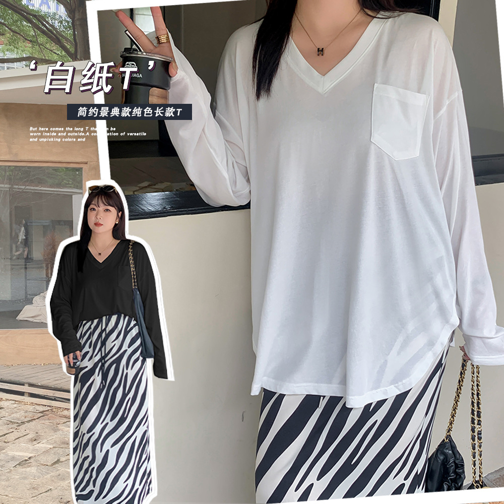 W1221 Xuanchen 衣料品ファットガール MM プラスサイズ婦人服秋の新 V ネックボトリングシャツルーズ Tシャツ