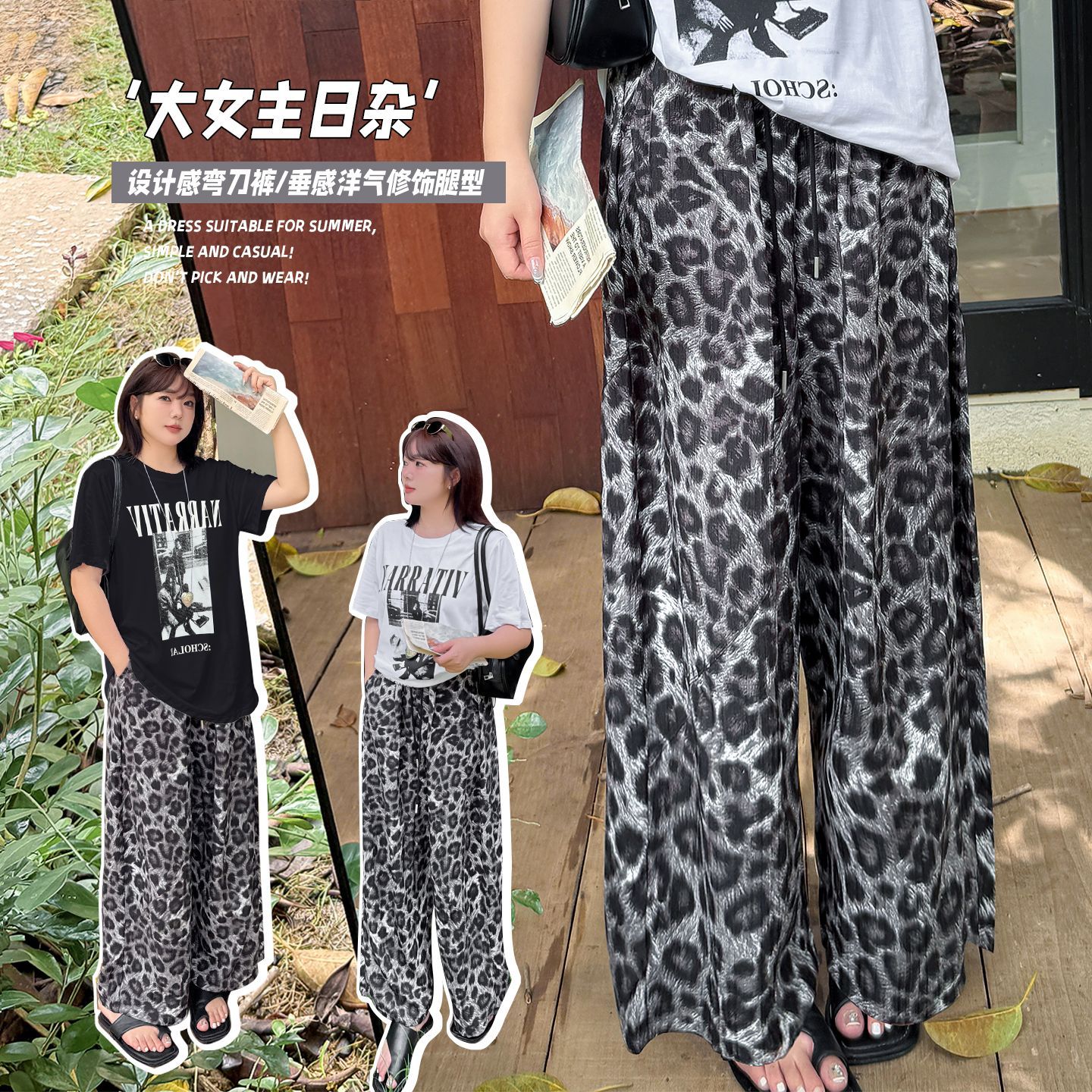 W1339夏设计感加肥胖妹妹豹纹阔腿裤大码长裤宽松高腰休闲裤-BFD